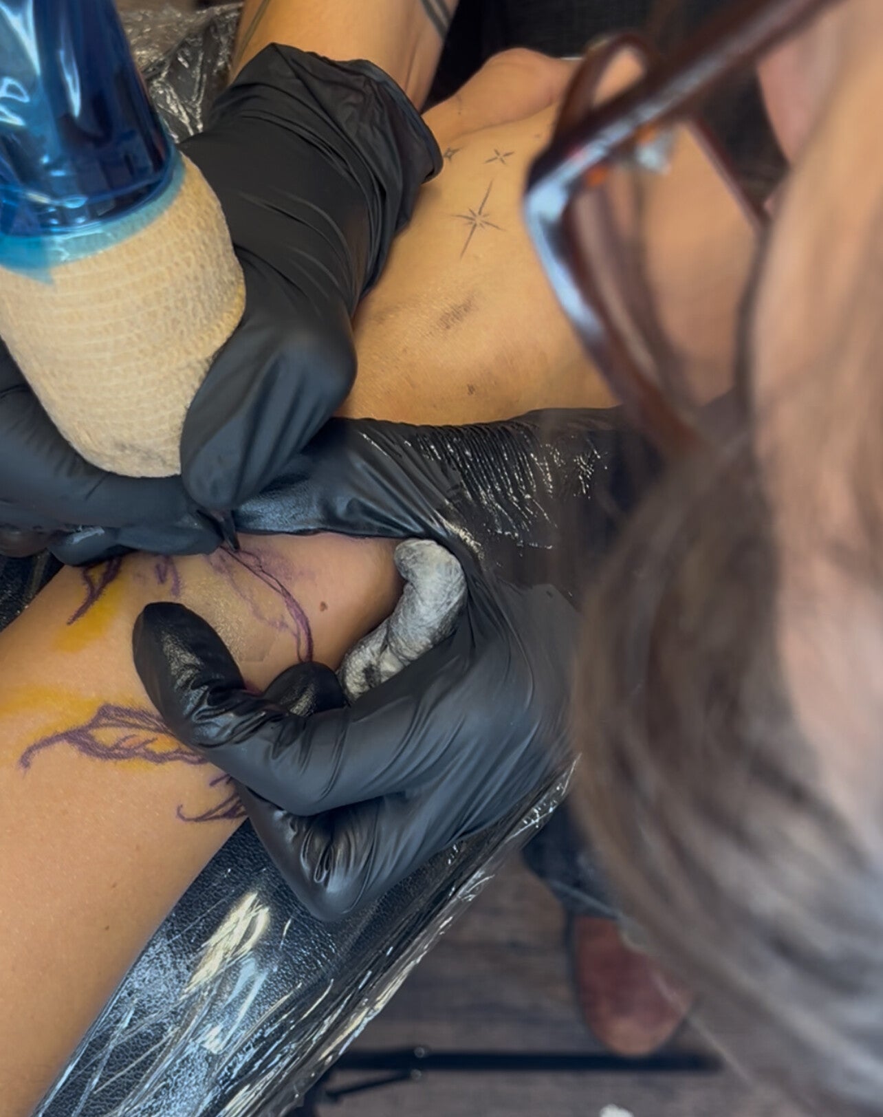 My tattoo style is mostly fine line — clean, soft, and detailed without being too heavy. I like keeping things delicate and intentional, whether it’s tiny script, subtle florals, or minimal designs that feel personal and timeless.